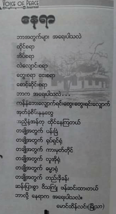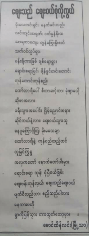 ေမာင္ထိန္လင္း(ၿမိဳ႕သာ)……………. ေဝမာနိကဘိုးတံနဲ႔ထိုးတဲ့ ေတးသြား